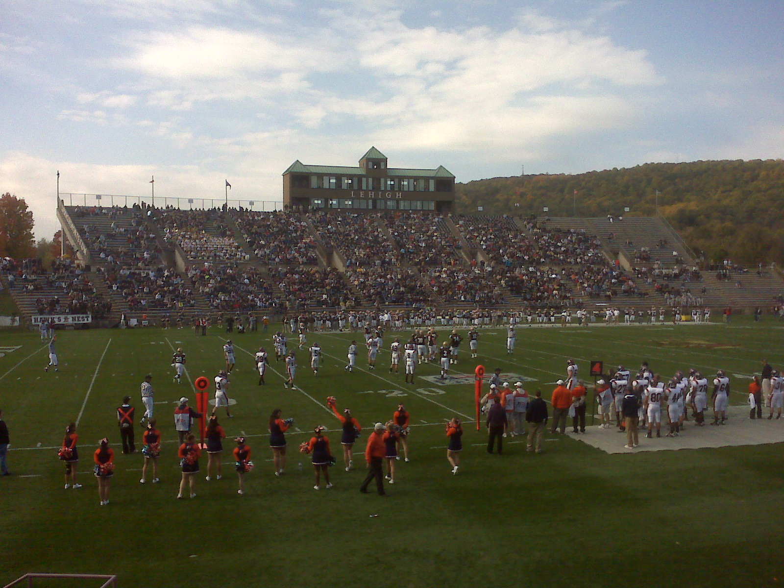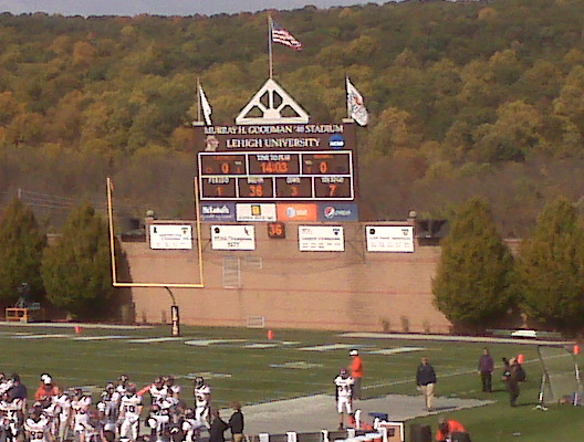 Had a great day with my daughter, my buddy and his son watching the Lehigh Mountain Hawks (also the Engineers, or Brown and White) but a beating on Bucknell at beautiful Goodman Stadium on Bethlehem, PA. A perfect fall day to watch a football game. Lehigh improved to 5 – 2 (2 -0) and looks to be on their way to a Patriot League title and an automatic bid in the Bowl Subdivision (1-AA) play-offs