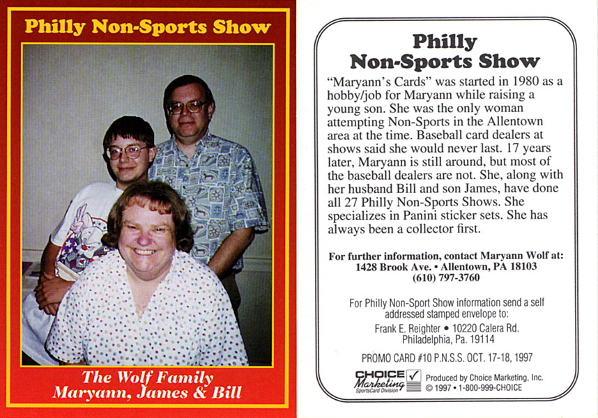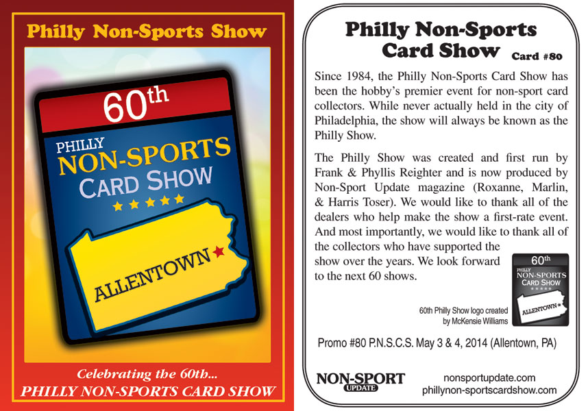 Only ays until the 84th Philly Non-Sports Card Show, held at The Greater Philadelphia Expo Center in Oaks, PA – Hall D. I have been attending the show for well over 20 years and always look forward to seeing friends and fellow card collectors. Here are some of the Free Philly Show Promos that are given out at each show. I have most of them, and a lot I got signed while at the shows. A big thanks to the Toser Family (Roxanne, Marlon, and Harris) for helping me out in finding some of the older promos, as well as hooking me up with blanks to get signed